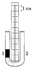 5 | В U-образных трубках находятся две несмешивающиеся жидкости 1 и 2. В какой из трубок плотность жидкости 1, налитой в трубку, в три раза меньше плотности жидкости 2?