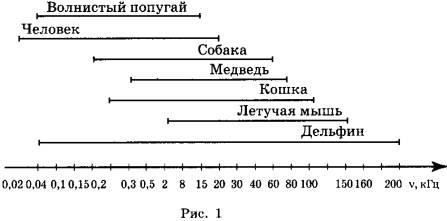 6 | На рис. 1 представлены диапазоны слышимых звуков для человека и различных животных, а на рис. 2 — диапазоны, приходящиеся на инфразвук, звук и ультразвук.