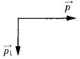 4 | Снаряд, импульс которого p был направлен горизонтально, разорвался на два осколка. Импульс одного осколка p1 сразу после разрыва был направлен вертикально вниз (рис. 1). Какое направление имел импульс p2 второго осколка (рис. 2)?