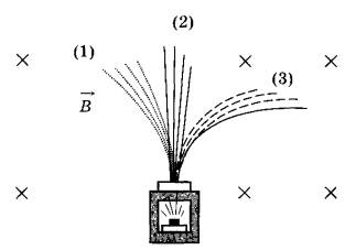 17 | Контейнер с радиоактивным веществом помещают в магнитное поле, в результате чего пучок радиоактивного излучения распадается на три компоненты (см. рисунок).