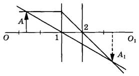 Согласно рисунку оптический центр линзы находится в точке 1) 1, причём линза является собирающей 2) 2, причём линза является собирающей 3) 1, причём линза является рассеивающей 4) 2, причём линза является рассеивающей
