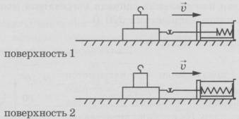 19 | Учитель на уроке последовательно провёл опыты по измерению силы трения скольжения при равномерном движении бруска с грузом по двум разным горизонтальным поверхностям (см. рисунок).