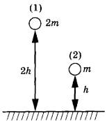4 | Два шара разной массы подняты на разную высоту (см. рисунок) относительно поверхности стола. Сравните потенциальные энергии шаров E1 и E2. Считать, что потенциальная энергия отсчитывается от уровня крышки стола.