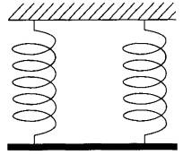 7 | Однородный стержень (см. рисунок) подвешен на двух одинаковых вертикальных пружинах жёсткостью 800 Н/м каждая. Какова масса стержня, если удлинение каждой пружины равно 2 см?