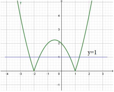 4. Наибольшее число общих точек график функции будет иметь с прямой y=m, когда она пересекает его четырежды (пример такой прямой показан на рисунке синей линией).