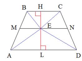 По условию задачи точка E лежит на отрезке MN – средней линии трапеции. Проведем через эту точку высоту HL трапеции. Тогда по определению средней линии, отрезки EH=EL=1/2∙HL. Используя данные обозначения, выразим площади треугольников BEC и AED следующим образом: