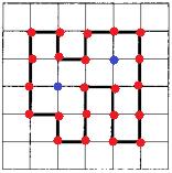 где M – число целочисленных вершин внутри фигуры (синие точки); N – число целочисленных точек на границах фигуры (красные точки).