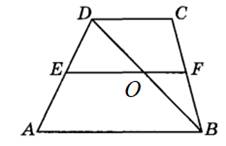 Основание трапеции DC=14, а основание AB=19. Рассмотрим треугольник ADB. В нем отрезок OE – это средняя линия треугольника и равна половине основания AB (так как параллельна ему):