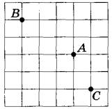 Задание 19. На клетчатой бумаге с размером клетки 1x1 отмечены три точки: А, В и С. Найдите расстояние от точки А до середины отрезка ВС.