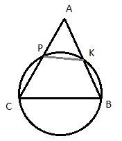 Задание 24. Окружность пересекает стороны АВ и АС треугольника ABC в точках K и P соответственно и проходит через вершины В и С. Найдите длину отрезка KP, если АР = 34, а сторона ВС в 2 раза меньше стороны АВ.