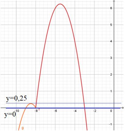 3. Прямая y=m имеет с графиком ровно три общие точки при m=0; 0,25. Значение 0 можно вычислить, подставив x=-8 в любую из двух функций: