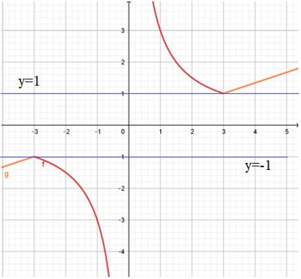 4. Прямая y=m имеет с графиком ровно одну общую точку при m = -1; 1. Эти значения можно вычислить, подставив в любую функцию граничные значения x=-3; 3: