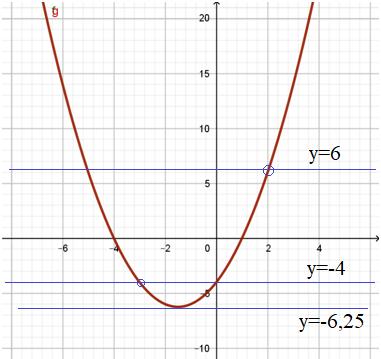 4. Прямая y=m имеет с графиком ровно одну общую точку при m=-6,25; -4; 6. Точку -6,25 можно вычислить как