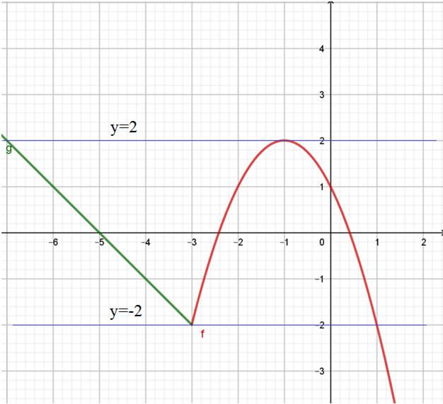 Из рисунка видно, что прямая y = m имеет с графиком ровно две общие точки при m=2 и m=-2 (синие линии, параллельные оси Ox).