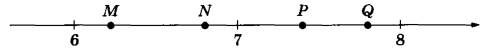 7 | На координатной прямой отмечены точки М, N, Р, Q. Одна из них соответствует числу √54. Какая это точка?