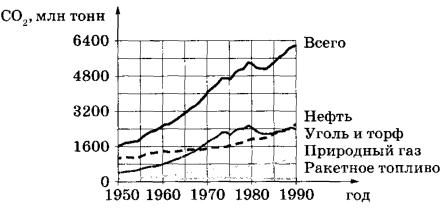 Рисунок. Рост всемирных выбросов углекислого газа во второй половине XX в.