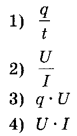 2 | Установите соответствие между названиями физических величин и формулами для расчёта этих величин. В формулах использованы обозначения: q — величина электрического заряда; U — электрическое напряжение; I — сила тока; t — время.