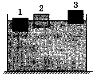 6 | В сосуде с водой плавают три деревянных бруска, которые в равновесии располагаются так, как показано на рисунке. Бруски сделаны из разных сортов древесины, но имеют одинаковые размеры. На какой из брусков действует наибольшая выталкивающая сила?