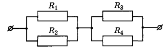 8 | Чему равно общее сопротивление участка цепи, изображённого на рисунке, если R1 = 8 Ом, R2 = 8 Ом, R3 = 10 Ом, R4 = 10 Ом?