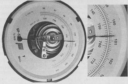 15 | Запишите результат измерения атмосферного давления с помощью барометра-анероида (см. рисунок), учитывая, что погрешность измерения равна цене деления.