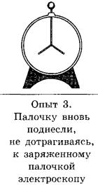 16 | Учитель на уроке, используя палочку, кусок ткани и электроскоп, последовательно провёл опыты по электризации. Условия проведения опытов и показания электроскопа представлены на рисунке.