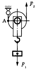 6 | На рисунке изображён подвижный блок, с помощью которого, прикладывая к свободному концу нити силу F, равномерно поднимают груз массой 2 кг.