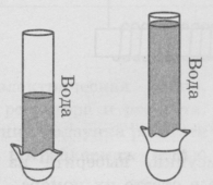 16 | В стеклянную трубку, нижнее отверстие которой закрыто тонкой резиновой плёнкой, по очереди наливают разные объёмы воды (см. рисунок). В результате резиновое дно прогибается.