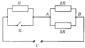 12 | На рисунке изображена схема электрической цепи, включающей источник постоянного напряжения U, три резистора сопротивлениями R, 2R, 3R и ключ К.