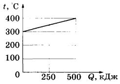 7 | На рисунке представлен график зависимости температуры t твёрдого тела от полученного им количества теплоты Q. Масса тела 2 кг. Чему равна удельная теплоёмкость вещества этого тела?