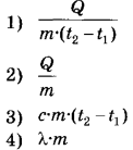 2 | Установите соответствие между названиями физических величин и формулами для расчёта этих величин. В формулах использованы обозначения: t — температура; Q — количество теплоты; m — масса тела; c — удельная теплоёмкость тела; λ — удельная теплота плавления.