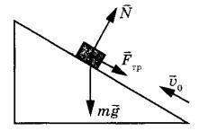 11 | В инерциальной системе отсчёта брусок, которому сообщили начальную скорость, начинает скользить вверх по наклонной плоскости (см. рисунок). Как в процессе скольжения будут меняться кинетическая и полная механическая энергия бруска?