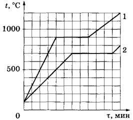 13 | Для исследования тепловых свойств двух кристаллических тел (1 и 2) их в равных массах (100 г) поместили в одинаковые сосуды и нагревали на одинаковых электрических плитках. Через определённые промежутки времени измеряли температуры тел в сосудах. По результатам проведённых исследований были построены графики зависимости температуры тел 1 и 2 от времени нагревания (см. рисунок).