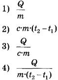 2 | Установите соответствие между названиями физических величин и формулами для расчёта этих величин. В формулах использованы обозначения: t — температура; Q — количество теплоты; m — масса тела; c — удельная теплоёмкость тела.