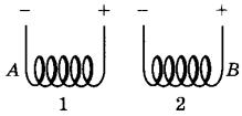 14 | Две проводящие спирали подключают к источникам постоянного тока (см. рисунок).