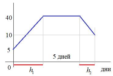 Общее число капель – это площадь под этим графиком, которую можно вычислить как площади двух трапеций и одного центрального прямоугольника: