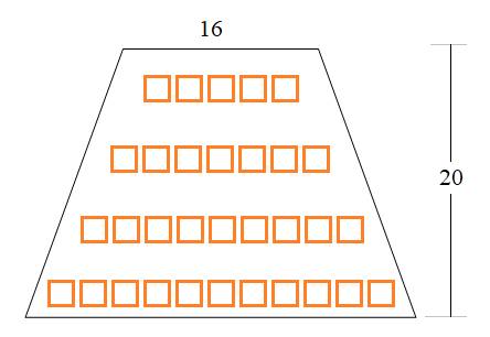Амфитеатр можно представить в виде трапеции, у которой верхнее основание равно 16 – число мест в 30-м ряду, а общее число рядов (высота трапеции) h=20: