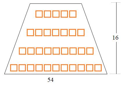 Амфитеатр можно представить в виде трапеции, у которой верхнее основание равно 54 – число мест в 1-м ряду, а общее число рядов (высота трапеции) h=16: