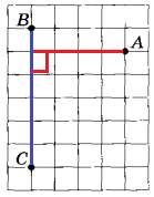 Из рисунка видно, что это расстояние (красная линия) равно 4 клетки.