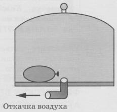 2. В процессе откачки воздуха из-под колпака внешнее давление, действующее на оболочку шарика, уменьшается. Под действием давления воздуха внутри шарика он начинает расширяться до тех пор, пока внутреннее и внешнее воздействия не компенсируются.