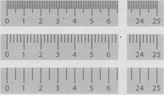 Задание 21. Необходимо как можно точнее провести измерения сторон стальной прямоугольной пластинки. Известно, что длины сторон пластинки не превышают 200 мм. Имеются три линейки (см. рисунок), погрешность измерения для каждой из них равна цене деления. Какую из линеек целесообразно использовать? Ответ поясните.