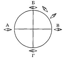 Из рисунка 1 видно, что магнитные полюсы тереллы расположены в точках А и В, так как магнитная стрелка в этих точках имеет перпендикулярное и противоположное направление.