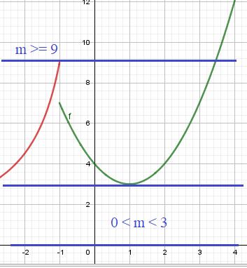 Ответ: 0 < m < 3; m >= 9