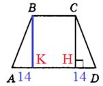 Так как трапеция равнобедренная, то высоты из B и из C будут делить отрезок AD на равные части по 14 единиц от каждой из точек A и D (см. рисунок):
