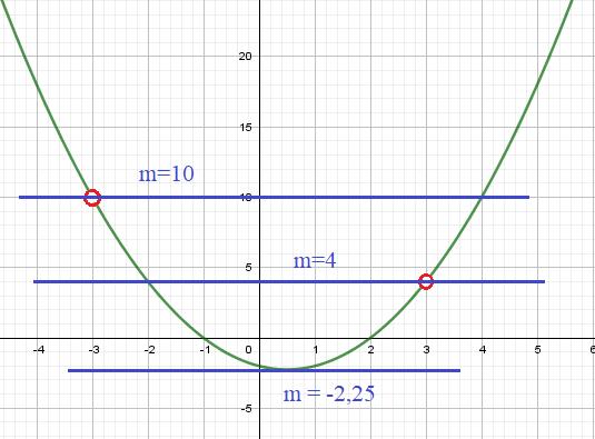 4. Определим значения m, при которых прямая y = m имеет ровно одну точку пересечения: