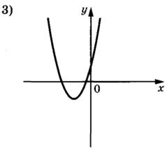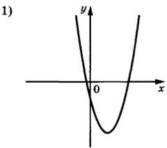 А) a > 0, c < 0 – ветви направлены вверх и отрицательное смещение по оси ординат; график под номером 1;