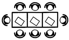 Можно заметить, что за крайними столиками располагаются по три человека, а за промежуточными – по два: