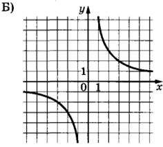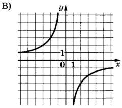 Графики представляют собой гиперболы. Если перед дробью у функции гиперболы стоит знак минус, то график определен во II и IV четвертях системы координат, иначе, при положительном знаке, график определен в I и III четвертях. Множитель перед x определяет степень «прижимания» графика гиперболы к осям координат: чем он больше, тем менее график «прижат» к осям системы координат. Учитывая это, выберем графику соответствующую формулу.