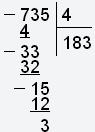 Разделим число 735 на 4 в столбик, получим: