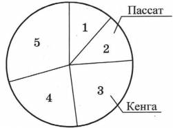 1) Из рисунка видно, что сектор 4 меньше сектора 5, но больше сектора 1, следовательно, эта авиакомпания должна стоять на втором месте по числу самолетов (исключая компании Кенга и Пассат). Из таблицы видно, что это авиакомпания Бумеранг.