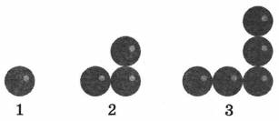 Из рисунка видно, что для каждой последующей фигуры нужно на 2 шара больше, чем для предыдущей. В результате, имеем такую последовательность из числа шаров: